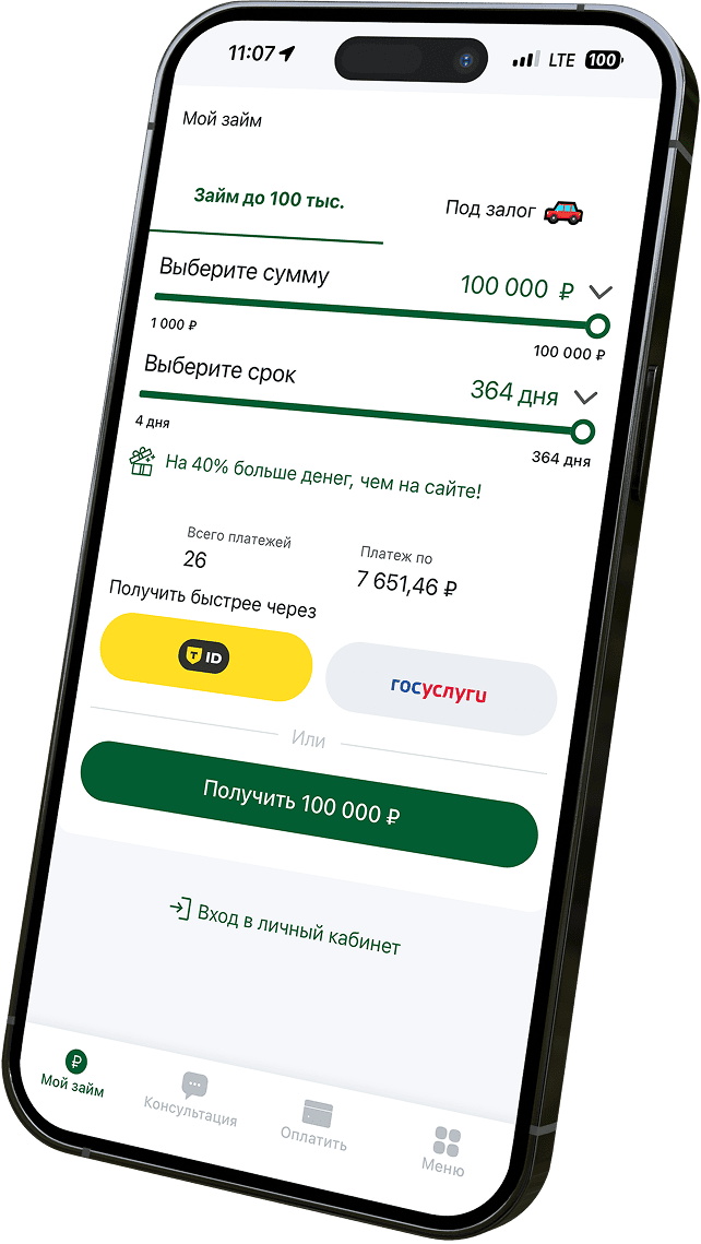 Получила 100 000 рублей. Мне нравится, что у вас можно взять нормальную сумму сразу, а не мыкаться-пыкаться с небольшими суммами. Деньги пришли сразу. Я выбрала погашение под удобные даты. Это тоже очень удобно, подобрала как раз под выплату аванса и зарплаты.